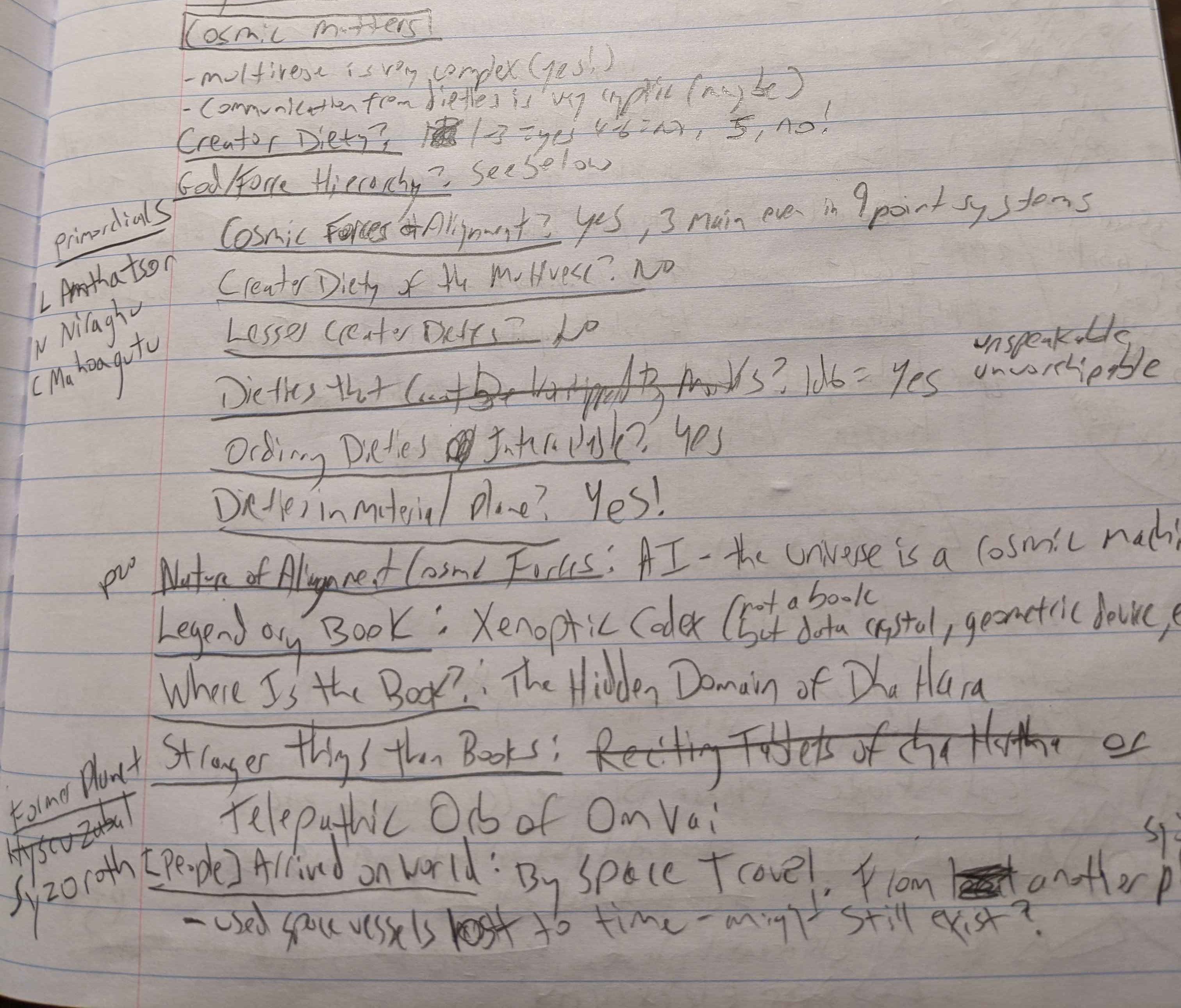 Next time, we're really starting from the top with the setting's cosmology. Typically, this is the first drawn out rabbit hole I might go down.