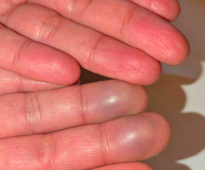 A fun thing happened last Friday. A heavy cutting board fell three feet from a shelf. Edge first. Htting a very solid wood surface. The problem was that my hand was in the way. That hand/eye coordination trained from youth through countless hours on controllers were no use now. I was too slow and it hit two fingers on my right hand.Blunt Damage